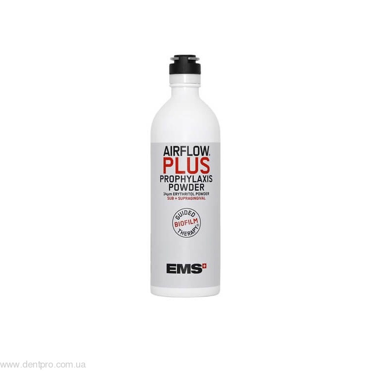 Порошок AIRFLOW® PLUS - это первый высокотехнологичный порошок, который минимально инвазивным путём удаляет биоплёнку и слабоминерализованные зубные отложения со всех видов поверхностей: эмали, дентина, мягких тканей, композитных реставраций, ортодонтических конструкций или поверхностей дентальных имплантатов. Он уникален тем, что благодаря эритритолу, который является основной его составляющей, этот порошок показан для удаления неминерализованных и слабоминерализованных зубных отложений с наддесневых и поддесневых поверхностей зубов.