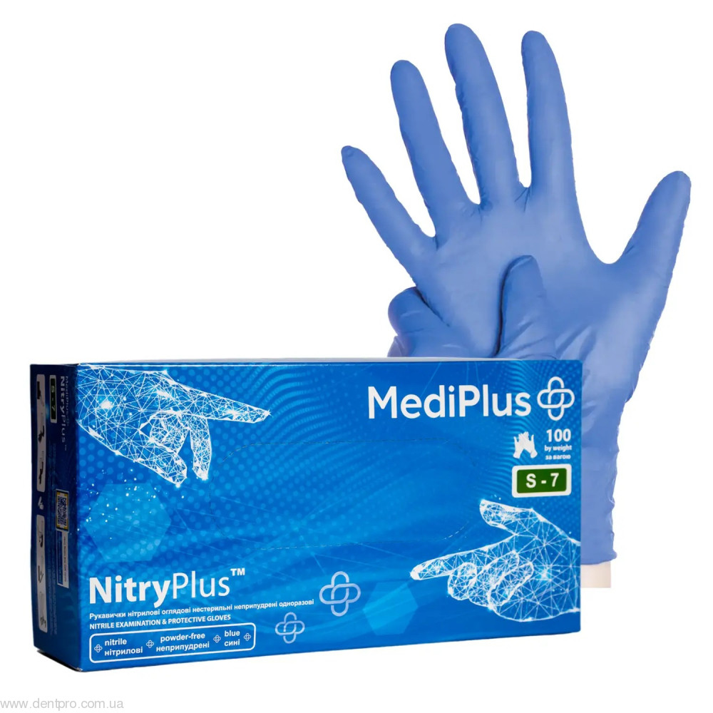 MediPlus NitryPlus (голубые), перчатки нитриловые смотровые 3.8г, упаковка 100шт (50 пар)