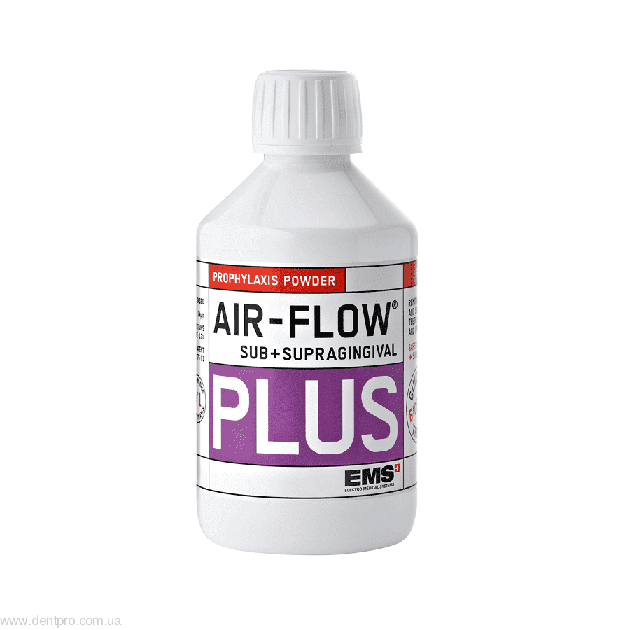 Порошок AIRFLOW® PLUS - это первый высокотехнологичный порошок, который минимально инвазивным путём удаляет биоплёнку и слабоминерализованные зубные отложения со всех видов поверхностей: эмали, дентина, мягких тканей, композитных реставраций, ортодонтических конструкций или поверхностей дентальных имплантатов. Он уникален тем, что благодаря эритритолу, который является основной его составляющей, этот порошок показан для удаления неминерализованных и слабоминерализованных зубных отложений с наддесневых и поддесневых поверхностей зубов.