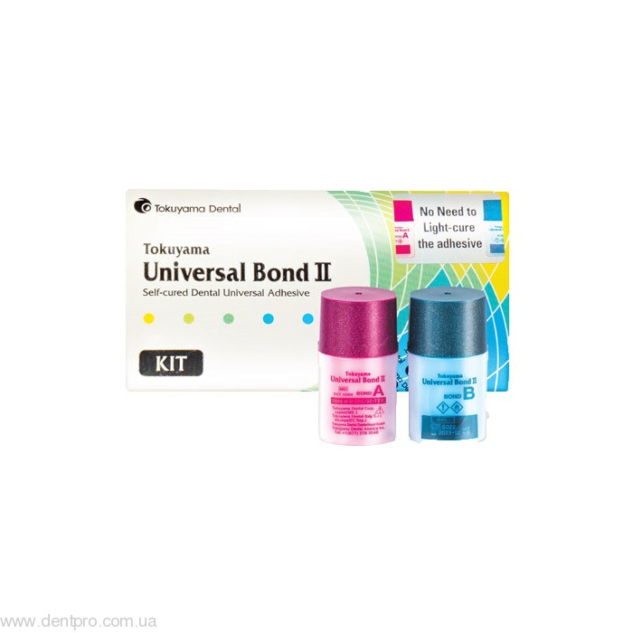 Tokuyama Universal Bond представляет собой двухкомпонентный самоотверждаемый универсальный бонд как для прямых, так и для не прямых реставраций, который может быть использован с методами самотравления, селективного травления и тотального травления.