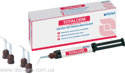 — Самоадгезивный TotalCem прекрасно фиксируется с эмалью, дентином, металлическими, керамическими, фарфоровыми, циркониевыми формами и другими композитами. Для штифтов, коронок, мостов, вкладок и накладок.