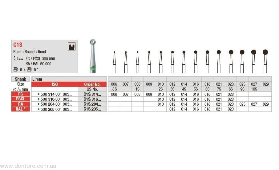 Твердосплавный бор C1S.314 Edenta FG, шарик для турбинного наконечника, 1шт